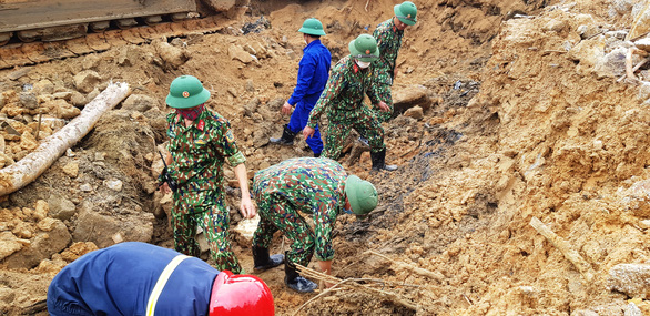 Lực lượng tìm kiếm cứu nạn đã sử dụng máy múc để đào đất đá khu vực này. Lực lượng công binh sau khi phát hiện thi thể đã dùng sức người đưa lên trên để lực lượng quân y vệ sinh, xử lý hóa chất.