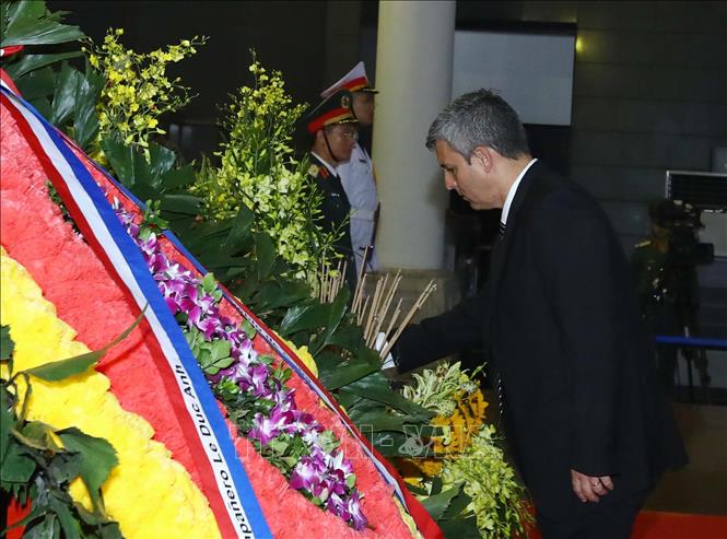 Đoàn đại biểu Cộng hòa Cuba, do Bộ trưởng Bộ truyền thông Jorge Luis Perdomo Di-Lella dẫn đầu, viếng đồng chí Lê Đức Anh. Ảnh: Thống Nhất/TTXVN |