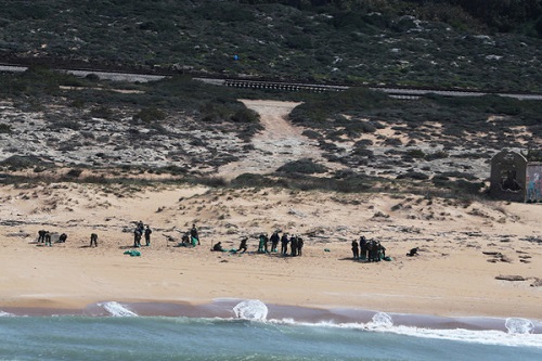 Một nhóm binh sĩ Israel đang thu dọn quanh vùng bờ biển bị sự cố tràn dầu làm ô nhiễm. Ảnh: Reuters |