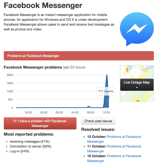 Cụ thể, sau một số dấu hiệu News Feed hơi lag và load chậm hơn, không thể dễ dàng kéo xuống đọc tin liên tục nhanh như trước thì đến nay tính năng chat gửi tin Facebook Messenger cũng đã "sập" tương tự.
