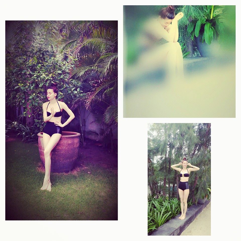 | Hồ Ngọc Hà khoe ảnh diện bikini và nói vui rằng: "Xin đừng nhìn e... xấu hổ sáng sớm chưa uýnh răng đánh mặt đã lao ra biển rồi." |