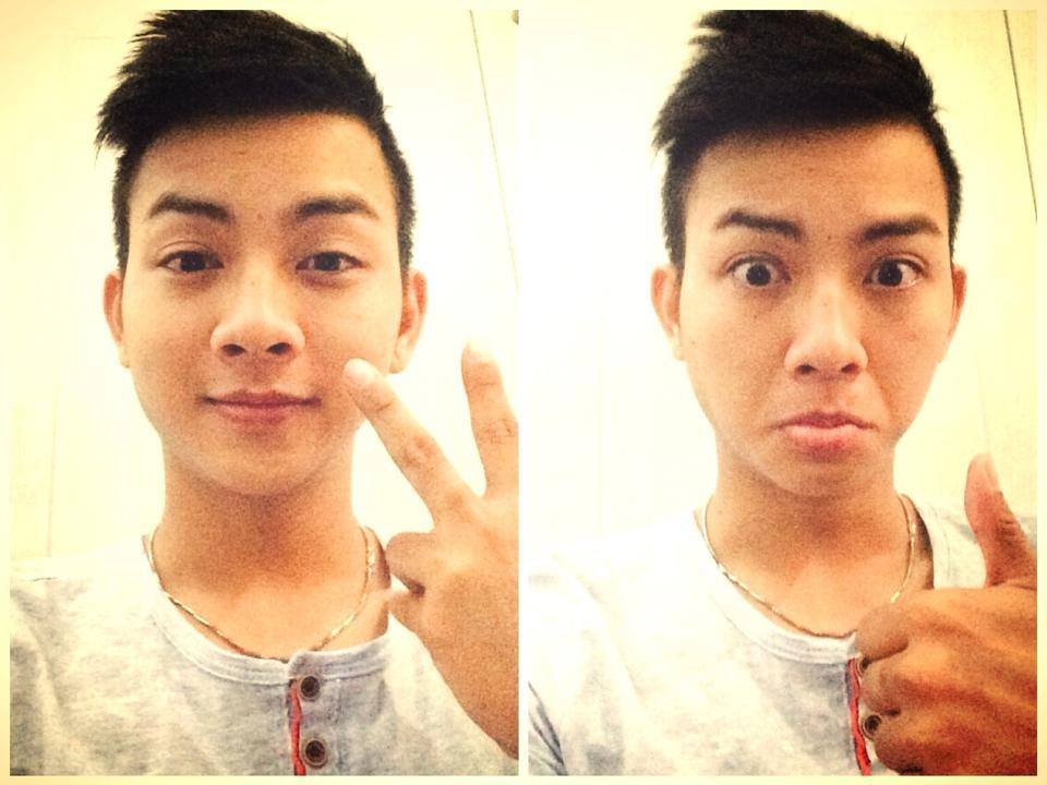 | Hoài Lâm xì-tin chụp hình dù mới ngủ dậy. |