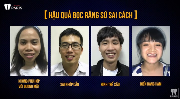 Rất nhiều các nha khoa vì mục đích lợi nhuận có thể đã tiến hành bọc răng sứ sai cách, mài răng sứ quá nhiều, hay quy trình bọc răng sứ không đúng phương pháp, và không đảm bảo vô trùng tuyệt đối, nên gây ra nhiều hậu quả nghiêm trọng cho khách hàng: như sai khớp cắn, hình thể xấu, hay biến dạng hàm….