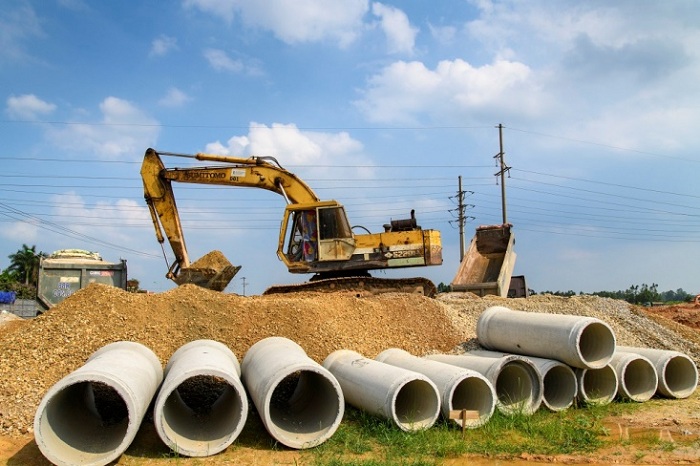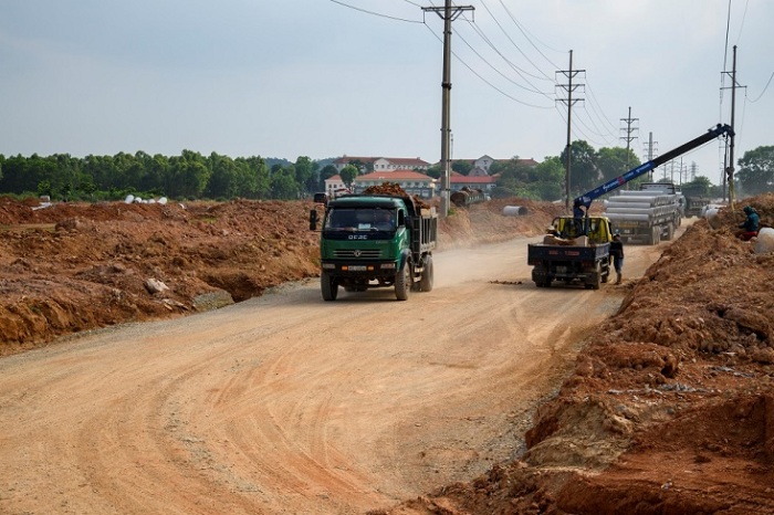 | Những đoàn xe tấp nập chở vật liệu xây dựng. |