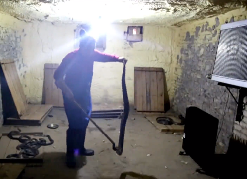 Bà Hui miệt mài với công việc nuôi rắn. Ảnh cắt từ clip. |