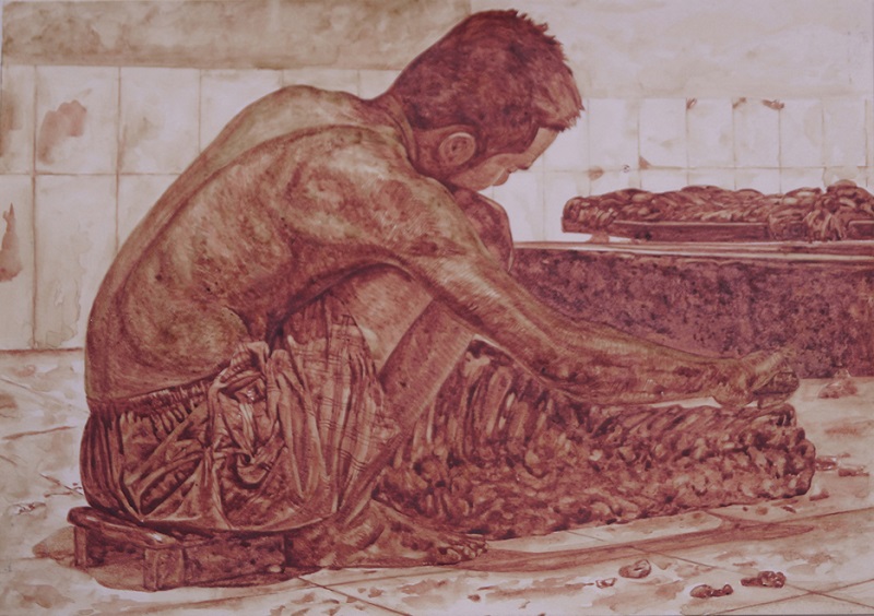 | Tác phẩm phác thảo “Lò mổ” đầy ấn tượng của tác giả Nguyễn Văn Đủ |