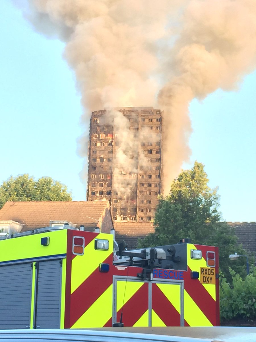 George Clarke, người dẫn chương trình của kênh Channel 4 ccho biết: "Tôi bị bao phủ hoàn toàn bởi khói, đó là điều tồi tệ. Tôi ở cách đó 100 mét và tôi hoàn toàn bị khói bao phủ. Thật đau lòng, tôi đã nhìn thấy một ai đó dùng tín hiệu phát sáng của họ ở tầng cao nhất và họ rõ ràng là không thể thoát ra".