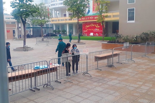 Lực lượng chức năng nhanh chóng cách ly các trường hợp là F1 của bệnh nhi N.Đ.N.K tại trường TH Xuân Phương. Ảnh: Vietnamnet |