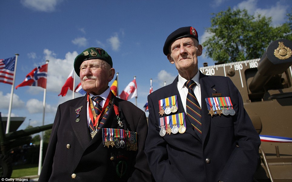 | Các cựu chiến binh của đội bộ binh 29 (Mỹ), bao gồm Hal Baumgarter (90 tuổi) đến từ Pennsylvania; Steve Melnikoff (94 tuổi) đến từ Rhode Island; Don McMarthy (90 tuổi) đến từ Maryland và Morley Piper (90 tuổi) đến từ Massachusetts tham dự buổi kỷ niệm ngày đổ bộ tại bãi biển Omaha vào lúc bình minh. |