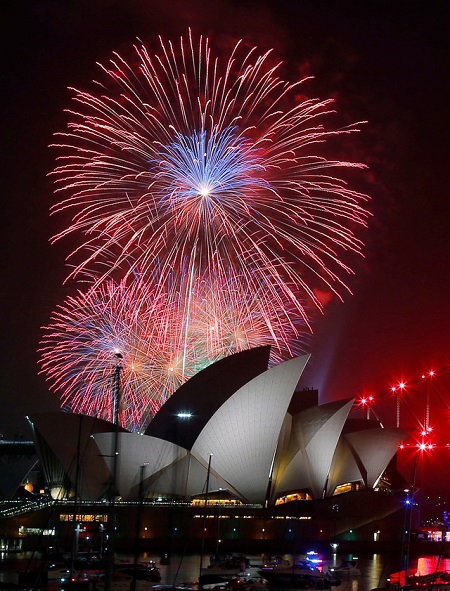 Australia đón năm mới bằng màn bắn pháo hoa trên Nhà hát opera Sydney và Cầu cảng Sydney. Hơnn một triệu người đã tụ tập để ngắm nhìn màn trình diễn. Sydney đã sử dụng 7 tấn pháo hoa với khoảng 2.000 hiệu ứng trong đêm giao thừa.