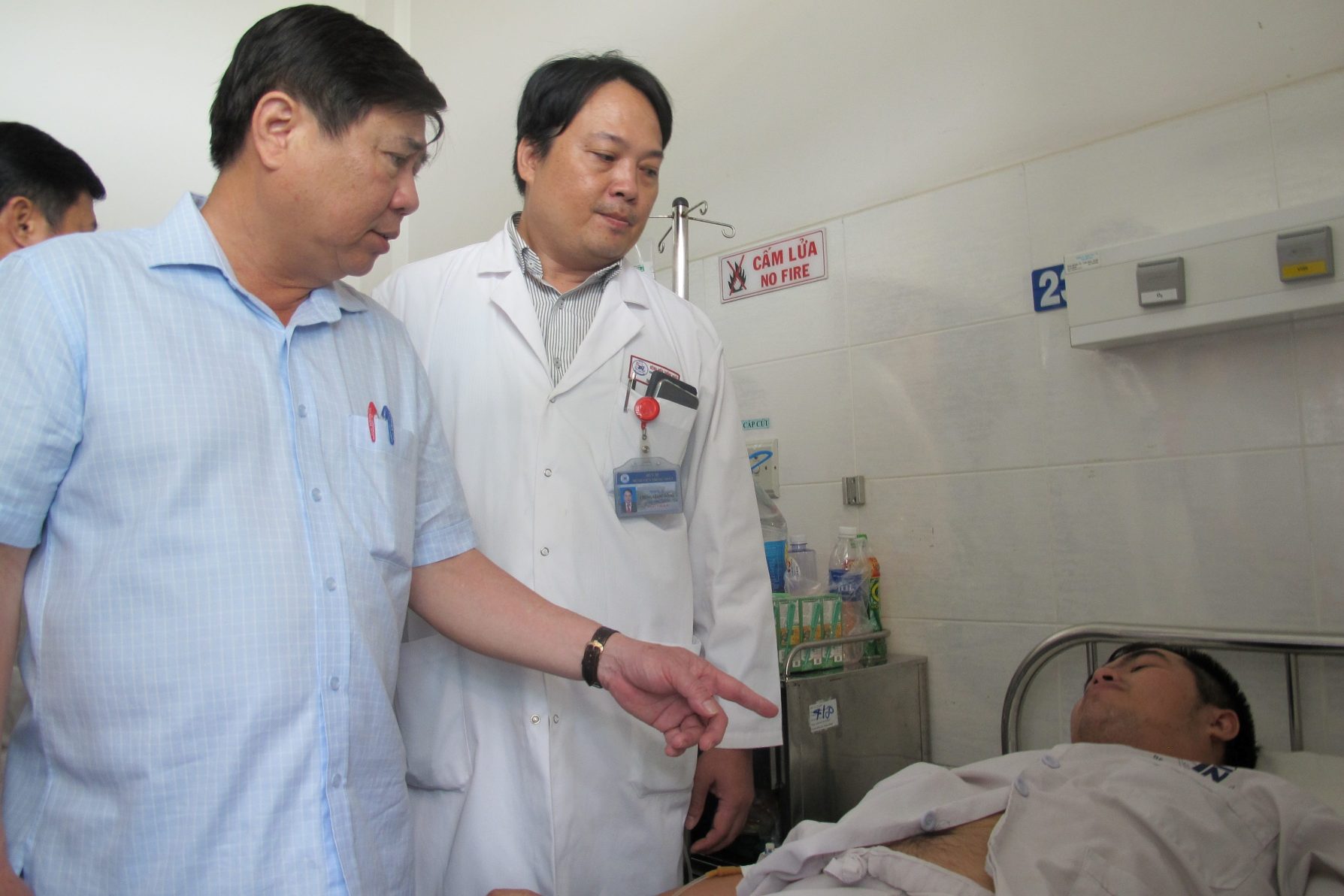 Lãnh đạo TP.HCM đến thăm "hiệp sĩ" bị thương. |