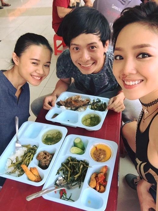 | Tóc Tiên với bữa cơm giản dị nhưng tràn ngập tiếng cười trên phim trường. |