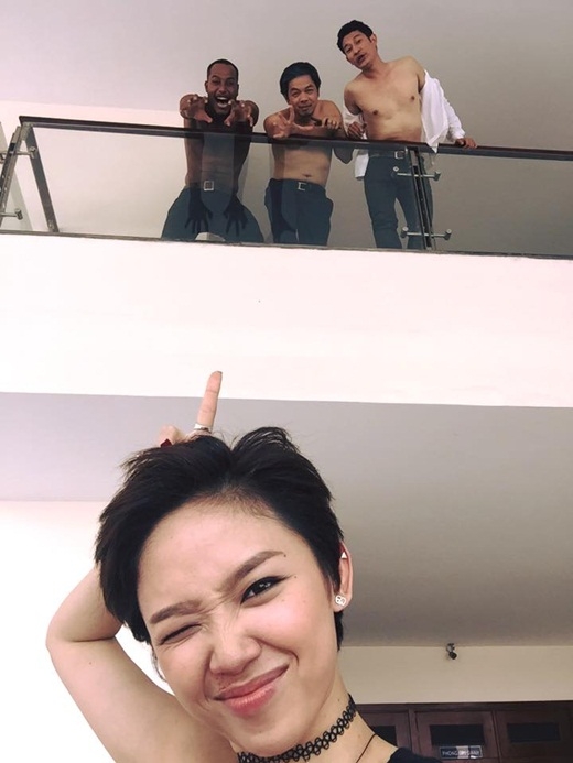 | Tóc Tiên và những phút thư giãn, nghỉ ngơi trên phim trường cùng các nam diễn viên "trẻ - đẹp - nghiêm túc". |