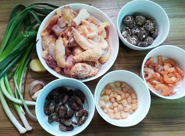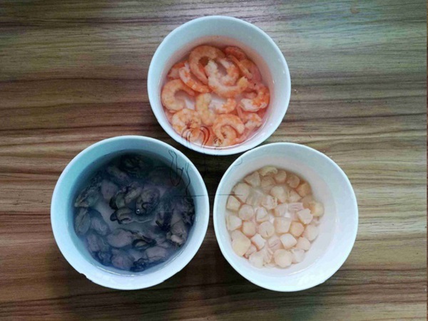- Tôm khô, sò điệp, hàu rửa sạch, ngâm mềm.