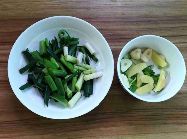 - Tỏi tây rửa sạch thái khúc, tỏi khô và gừng thái lát.