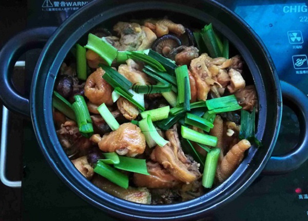 Cuối cùng thêm tỏi tây, đun thêm một lát rồi tắt bếp.