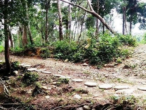 Con đường được san phẳng, lát một đường gạch để phục vụ lối vào. |