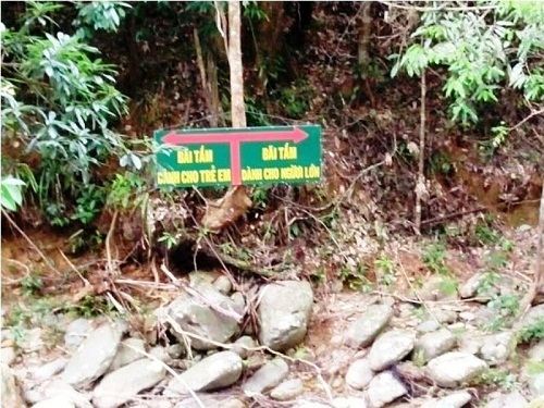 Tấm bảng chỉ dẫn vào khu du lịch suối Cân Te. |