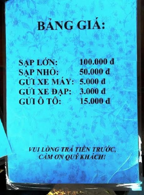 Bảng chỉ dẫn khu vực tắm và niêm yết giá các dịch vụ. |