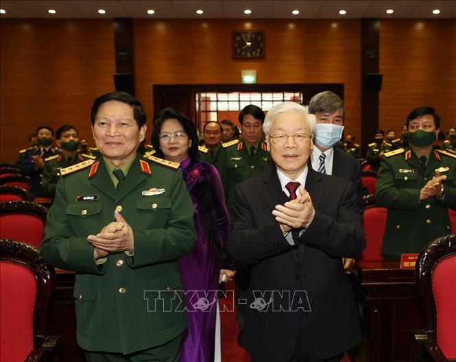 Tổng Bí thư, Chủ tịch nước Nguyễn Phú Trọng, Bí thư Quân ủy Trung ương đến dự Hội nghị. Ảnh: Trí Dũng/TTXVN |