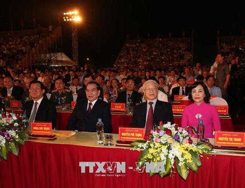 Tổng Bí thư Nguyễn Phú Trọng và các đại biểu dự Lễ kỷ niệm. Ảnh:TTXVN |