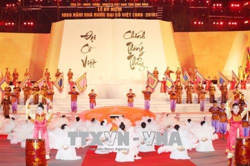 Dự lễ kỷ niệm 1050 năm Nhà nước Đại Cồ Việt, các đại biểu và du khách thập phương còn được hòa mình trong không khí vui tươi, phấn khởi của chương trình nghệ thuật "Rực sáng thiên anh hùng ca Đại Cồ Việt" và chiêm ngưỡng màn bắn pháo hoa tầm cao đặc sắc.