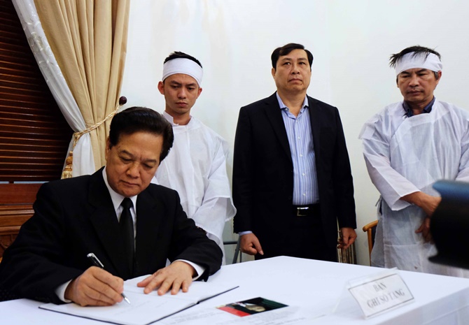 ![]() Thủ tướng Nguyễn Tấn Dũng viết sổ tang. |