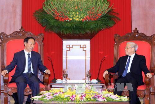 Tổng Bí thư Nguyễn Phú Trọng tiếp đồng chí Vương Gia Thụy. Ảnh: TTXVN |
