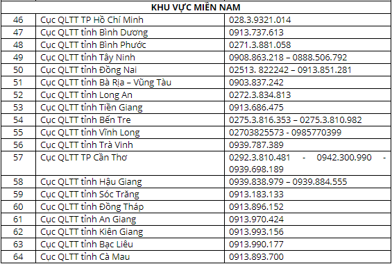 Do đó, Tổng cục Quản lý thị trường đề nghị, nếu công dân và doanh nghiệp phát hiện những vi phạm nêu trên thì có thể gọi điện phản ánh đến các số điện thoại theo danh sách sau: