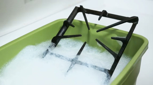 Cách làm sạch bếp ga loại bếp ga cũng không khác nhiều lắm so với 2 loại bếp trên. Đầu tiên, bạn tắt bếp để nguội hẳn rồi tháo kiềng ngâm vào trong nước sôi cho những vết bẩn mềm ra để cho quá trình làm sạch bếp được dễ dàng hơn. Sau đó, bạn hòa nước rửa bát với nước nóng rồi ngâm kiềng vào đó, vừa ngâm bạn vừa chà sạch những vết dầu mỡ dính trên đó. Bạn lưu ý là không nên sử dụng xà phòng thay nước rửa bát bởi xà phòng có thể ăn mòn hết lớp mạ ở trên kiềng. Sau khi đã lau sạch hết vết bẩn bạn lại xả lại bằng nước ấm để kiềng được sạch bong sáng bóng.