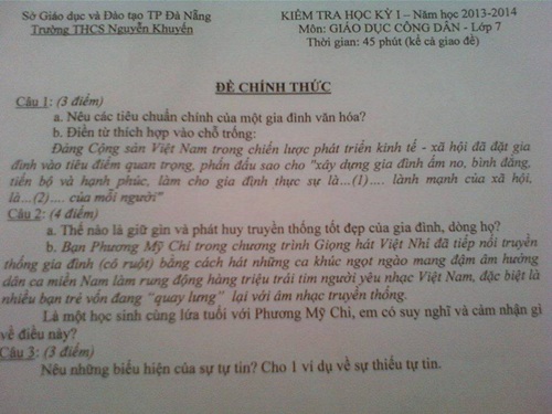 Ngoài ra, đề thi học kỳ 1 môn Giáo dục Công dân lớp 7 của trường THCS Nguyễn Khuyến, TP. Đà Nẵng xuất hiện cái tên Phương Mỹ Chi, nội dung bàn về việc giữ gìn và phát huy truyền thống tốt đẹp của gia đình, dòng họ. Đề thi được nhận định "tạo niềm hứng khởi cho học sinh" bởi cái tên Phương Mỹ Chi đang gây sốt thời gian đó.