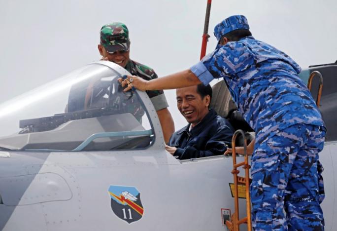 Tổng thống Indonesia Joko Widodo tới quần đảo Natuna thị sát Không quân tập trận. |