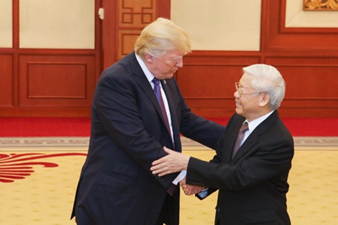 Tổng thống Mỹ Donald Trump đã tới chào xã giao Tổng bí thư Nguyễn Phú Trọng. Ảnh: Thanh Niên |
