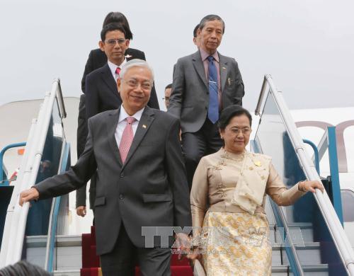 Tổng thống Htin Kyaw và Phu nhân tới sân bay quốc tế Nội Bài, Hà Nội. Ảnh: Phương Hoa/TTXVN. |