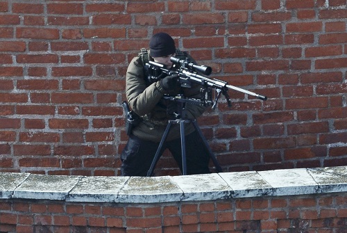 Luôn có vệ sĩ ẩn nấp trên các tòa nhà nơi ông Putin xuất hiện, sẵn sàng bắn tỉa những kẻ có khả năng gây nguy hiểm cho Tổng thống. Ảnh: Getty |