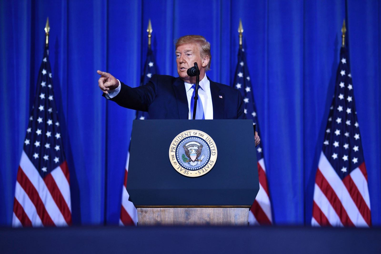 Tổng thống Mỹ Donald Trump tại cuộc họp báo sau Hội nghị Thượng đỉnh G20 tại Nhật Bản ngày 29/6/2019. Ảnh: SCMP |