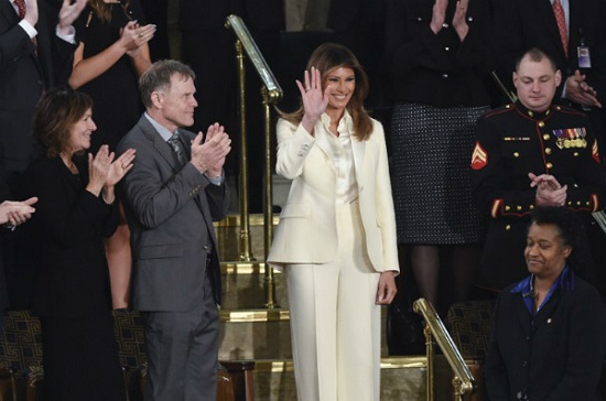 Khoảng 20 phút trước khi bài phát biểu Thông điệp liên bang diễn ra, Tổng thống Trump cũng được nhìn thấy mặc bộ vest đen, thắt cà vạt xanh, lên chiếc limousine để di chuyển một đoạn đường ngắn từ Nhà Trắng tới Điện Capitol hay Quốc hội Mỹ. Đệ nhất phu nhân Melania đã có mặt tại Điện Capitol từ trước đó.