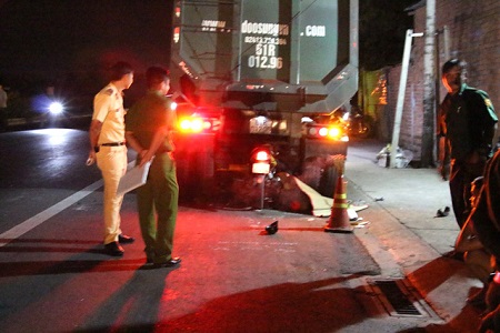 Khi cách giao lộ Phạm Ngọc Thạch – Mỹ Phước Tân Vạn khoảng 600m thì xe của anh Duy tông thẳng vào đuôi xe đầu kéo đang dừng bên phải, làn đường xe máy.