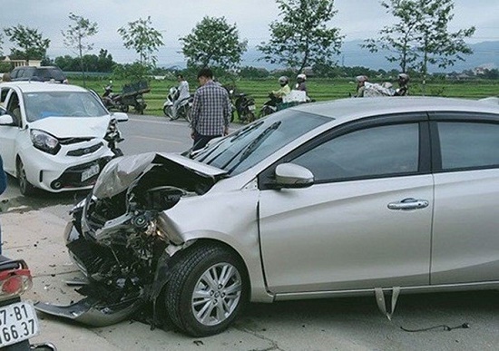 Hai xe ô tô va chạm nhau khiến 1 cháu nhỏ bị thương tại Nghệ An. Ảnh: Môi Trường và Đô Thị. |