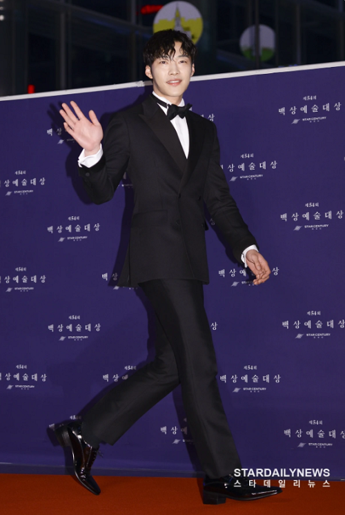 Woo Do Hwan tham dự giải Baeksang lần thứ 54 trong một bộ vest tuxedo màu đen lôi cuốn và tinh tế. Kiểu tóc xoăn nhẹ nhàng của anh ấy như thêm một chút nhẹ nhàng và tinh tế cho bộ tuxedo cứng nhắc. Người hâm mộ ngay lập tức đã yêu thích phong cách sang trọng này của Woo Do Hwan.