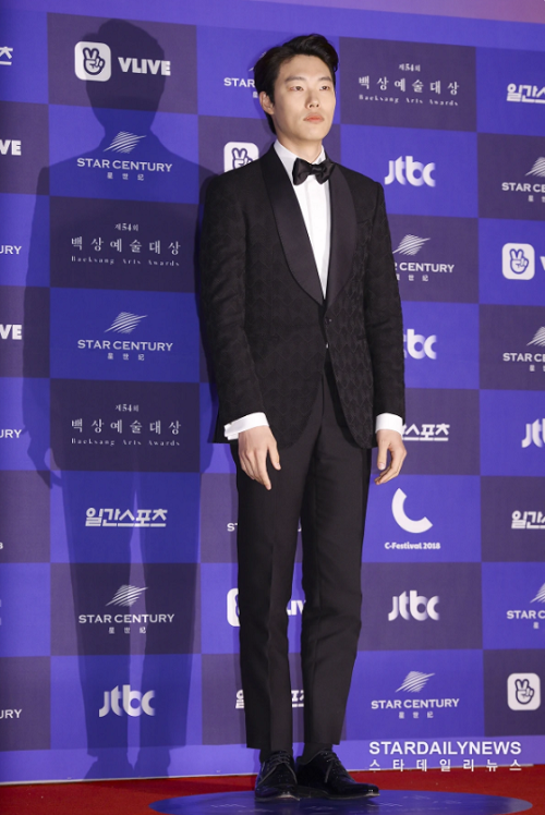 Ryu Jun Yeol đã chọn một bộ tuxedo độc đáo, khác biệt hẳn với các nam diễn viên. Các hoa văn tinh tế trên chiếc áo khoác đã làm nổi bật nét đẹp cơ bắp của anh chàng.