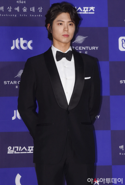 Park Bo Gum xuất hiện trong bộ vest tuxedo màu đen và cà vạt nơ lịch lãm. Nhưng điều khiến anh chàng tỏa sáng như một hoàng tử quý phái chính là mái tóc bồng bềnh lãng tử. Cũng là một trong những người tổ chức Giải Nghệ thuật Baeksang lần thứ 54, Park Bo Gum nổi bật trên sân khấu với tông màu đen và trắng.