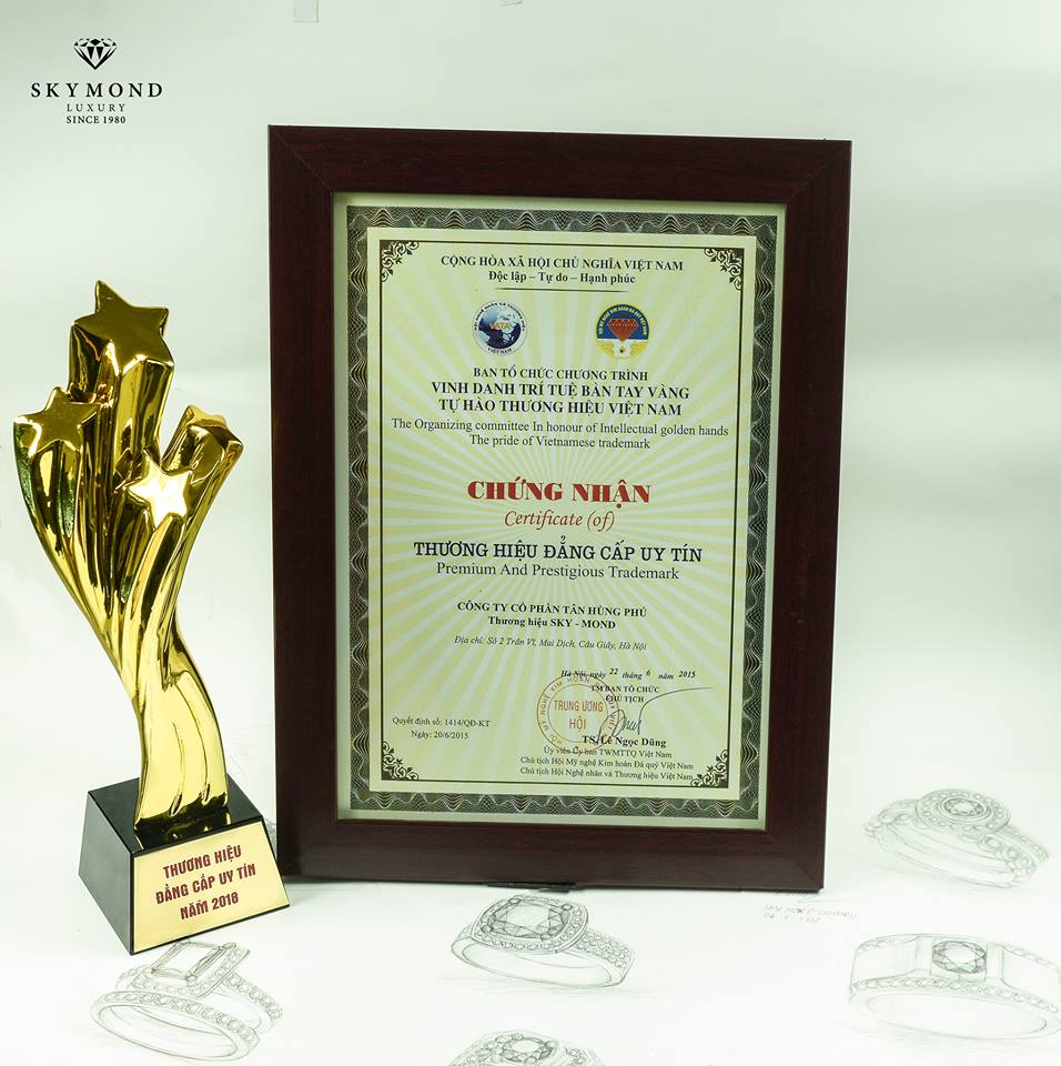 Cúp chứng nhận doanh nghiệp uy tín được trao tặng cho Skymond Luxury |