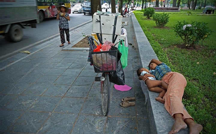 Hình ảnh 2 mẹ con vạ vật mưu sinh giữa thủ đô hoa lệ cũng gây xúc động đến nhiều người. Ảnh: Đào Thanh Hưng |