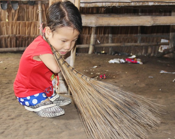 Những hình ảnh như bé tự tập viết chữ bằng tay, bằng miệng, tự xúc cơm ăn mà không cần ai giúp hay tự tắm gội thực sự gây xúc động mạnh. |