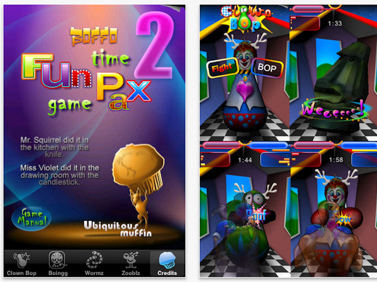 Với giá 299,99$, bạn có thể download "Boffo Fun Time Game Pax 2," nó cho phép bạn truy cập vào 4 trò chơi, bao gồm “Clown Bop” – trò chơi đấm chú hề như đấm bao cát.