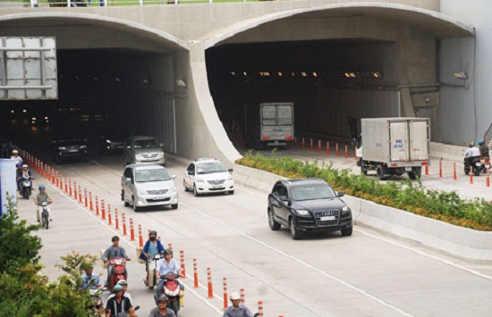Đường hầm sông Sài Gòn sẽ cấm các lại xe máy trong đêm 2/9. |