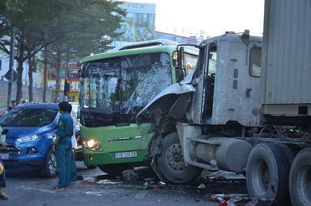 Báo Tuổi trẻ đưa tin, vào khoảng 5h45 ngày 20/1, xe đầu kéo (chưa rõ danh tính tài xế) chở hai container chạy trên đường Khánh Hội (phường 3, quận 4, TP HCM) hướng kênh Tàu Hủ về cầu Kênh Tẻ. Khi đến gần chân cầu, xe container bất ngờ lao qua dải phân cách rồi đâm sầm vào xe buýt chạy tuyến KCN Hiệp Phước - Công viên 23/9 chạy hướng ngược lại.
