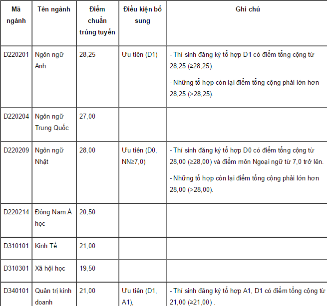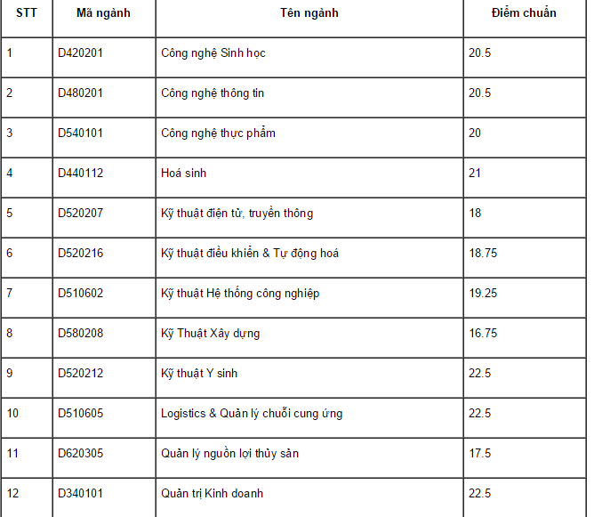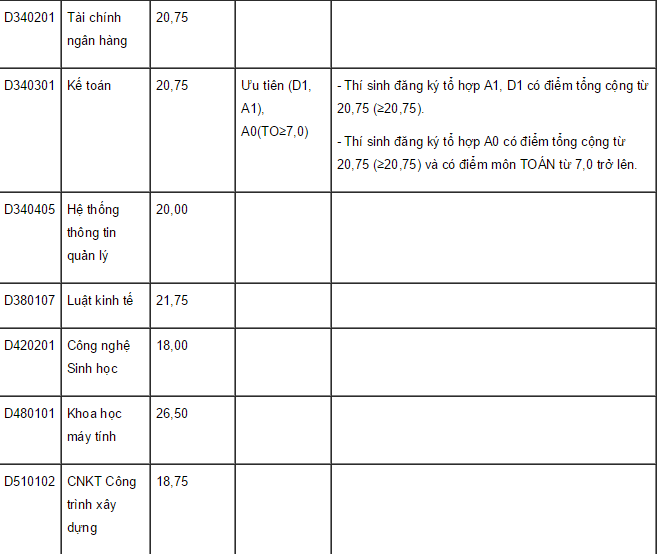 Theo Hội đồng tuyển sinh của trường, mức điểm trên áp dụng cho thí sinh thuộc khu vực 3; mức chênh lệch giữa hai khu vực kế tiếp là 0,5 điểm; mức chênh lệch giữa hai nhóm đối tượng ưu tiên kế tiếp là 1,0 điểm.