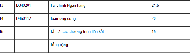 Điểm chuẩn của trường như sau: